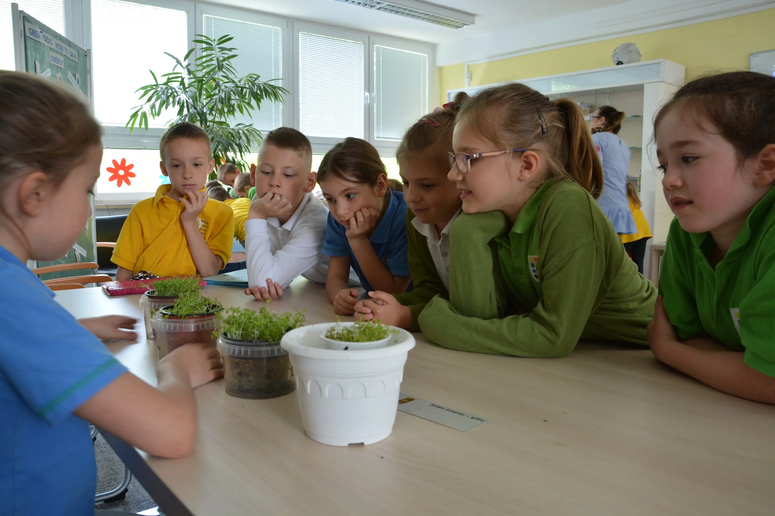 During the celebration of the Day of the Earth, pupils from the class 4.B with Ms. Ivi made interesting interactive activities for all school pupils. Children had the opportunity to visit 5 “houses” where they could learn something new, a brief instructional sound spot and quiz about the issue of recycling electric waste. The pupils could learn how the selected electric appliances are affecting the growth of the watercress, how to make a fridge free of electricity, how to save money at home, and also play with the electric building set based on the solar powered.